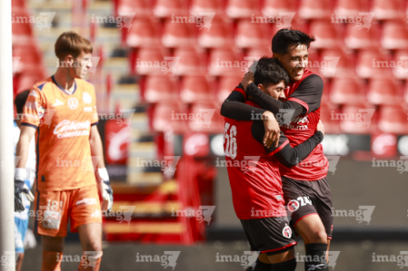 Tijuana, Baja California, 06 de febrero 2026. Christopher Rodríguez y Santiago Acosta, durante el partido correspondiente a la jornada 5 del torneo Clausura 2026 de la Liga BBVA MX categoría Sub19, entre los Xolos de Tijuana y el Club Puebla, celebrado en el estadio Caliente. Foto: Imago7/Alejandro Gutiérrez Mora