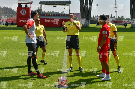 Toluca, Estado de México, 13 de febrero de 2026. Protocolo, durante el partido correspondiente a la jornada 6 del torneo Clausura 2026 de la Liga BBVA MX categoría Sub19, entre los Diablos Rojos del Toluca y los Xolos de Tijuana, celebrado en las Instalaciones de Metepec. Foto: Imago7/ Arturo Hernández