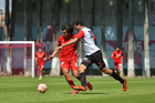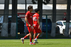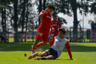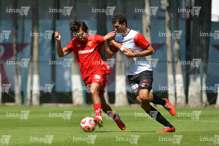 Toluca, Estado de México, 13 de febrero de 2026. César Díaz y Daniel Ávila, durante el partido correspondiente a la jornada 6 del torneo Clausura 2026 de la Liga BBVA MX categoría Sub19, entre los Diablos Rojos del Toluca y los Xolos de Tijuana, celebrado en las Instalaciones de Metepec. Foto: Imago7/ Arturo Hernández