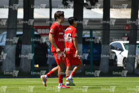 Toluca, Estado de México, 13 de febrero de 2026. Jugadores del Toluca sub19, durante el partido correspondiente a la jornada 6 del torneo Clausura 2026 de la Liga BBVA MX categoría Sub19, entre los Diablos Rojos del Toluca y los Xolos de Tijuana, celebrado en las Instalaciones de Metepec. Foto: Imago7/ Arturo Hernández
