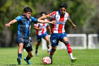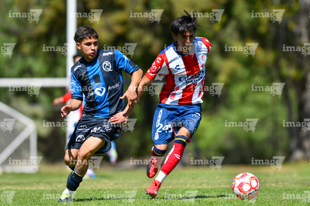 San Luis Potosí, San Luis Potosí, 14 de febrero de 2026. 231sl y 199q, durante el partido correspondiente a la jornada 6 del torneo Clausura 2026 de la Liga BBVA MX categoria Sub 19, entre el Atlético San Luis y los gallos del Quéretaro, realizado en la Presa.