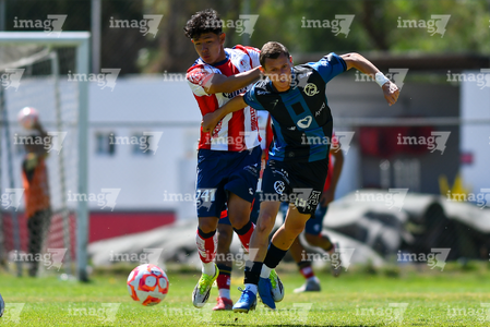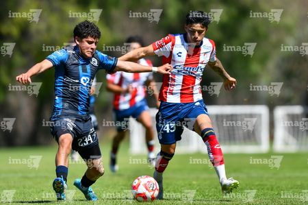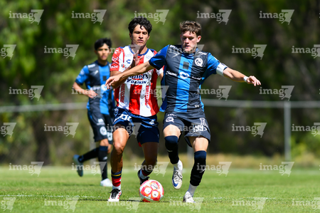 San Luis Potosí, San Luis Potosí, 14 de febrero de 2026. 245sl y 184q, durante el partido correspondiente a la jornada 6 del torneo Clausura 2026 de la Liga BBVA MX categoria Sub 19, entre el Atlético San Luis y los gallos del Quéretaro, realizado en la Presa.