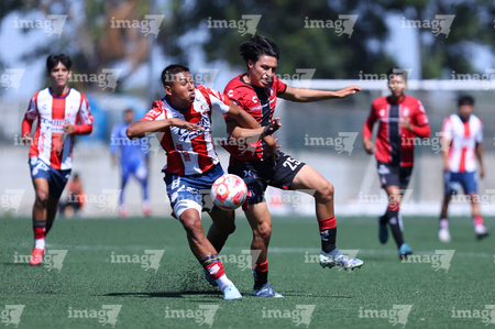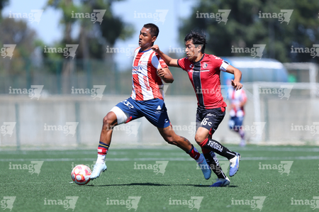 Guadalajara, Jalisco, 21 de febrero 2026. Ivan Dominguez (I), durante el partido correspondiente a la jornada 7 del torneo Clausura 2026 de la Liga BBVA MX categoría Sub19, entre los Rojinegros del Atlas y el Atlético San Luis, realizado en la Academia AGA. Foto: Imago7/Cristian Hernandez
