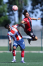 Guadalajara, Jalisco, 21 de febrero 2026. Francisco Aguirre y Omar Vichis, durante el partido correspondiente a la jornada 7 del torneo Clausura 2026 de la Liga BBVA MX categoría Sub19, entre los Rojinegros del Atlas y el Atlético San Luis, realizado en la Academia AGA. Foto: Imago7/Cristian Hernandez