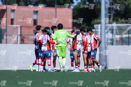 Guadalajara, Jalisco, 21 de febrero 2026. Jugadores de Atlético San Luis sub19, durante el partido correspondiente a la jornada 7 del torneo Clausura 2026 de la Liga BBVA MX categoría Sub19, entre los Rojinegros del Atlas y el Atlético San Luis, realizado en la Academia AGA. Foto: Imago7/Cristian Hernandez