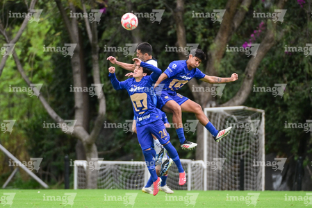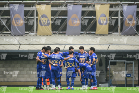 Ciudad de México, 22 de febrero 2026. Jugadores de Pumas, durante el partido correspondiente a la jornada 12 del torneo Clausura 2025 de la Liga BBVA MX categoría Sub19, entre los Pumas de la UNAM y los Rayados del Monterrey, realizado en Cantera. Foto: Imago7/ Alexis Chavez