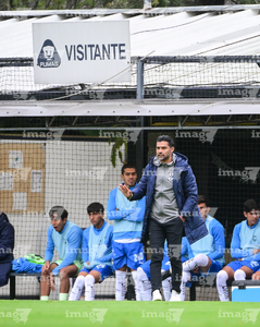 Ciudad de México, 22 de febrero 2026. Alejandro Estrada, director técnico, durante el partido correspondiente a la jornada 12 del torneo Clausura 2025 de la Liga BBVA MX categoría Sub19, entre los Pumas de la UNAM y los Rayados del Monterrey, realizado en Cantera. Foto: Imago7/ Alexis Chavez