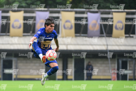 Ciudad de México, 22 de febrero 2026. Emiliano Hermida (I), durante el partido correspondiente a la jornada 12 del torneo Clausura 2025 de la Liga BBVA MX categoría Sub19, entre los Pumas de la UNAM y los Rayados del Monterrey, realizado en Cantera. Foto: Imago7/ Alexis Chavez