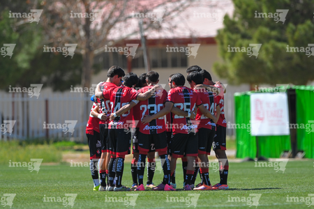 Ciudad Juárez, Chihuahua, 27 de febrero de 2026. Jugadores de Atlas, durante el partido correspondiente a la jornada 8 del torneo Clausura 2026 de la Liga BBVA MX categoría Sub19, entre los Bravos de FC Juárez y los Rojinegros del Atlas, realizado en realizado en el Instituto Tecnológico de Ciudad Juárez. Foto: Imago7/ José Zamora