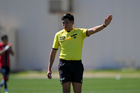 Ciudad Juárez, Chihuahua, 27 de febrero de 2026. Isaí Bueno, árbitro central, durante el partido correspondiente a la jornada 8 del torneo Clausura 2026 de la Liga BBVA MX categoría Sub19, entre los Bravos de FC Juárez y los Rojinegros del Atlas, realizado en realizado en el Instituto Tecnológico de Ciudad Juárez. Foto: Imago7/ José Zamora
