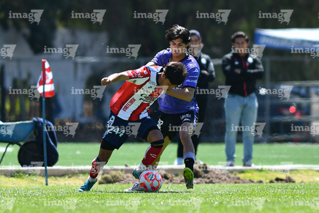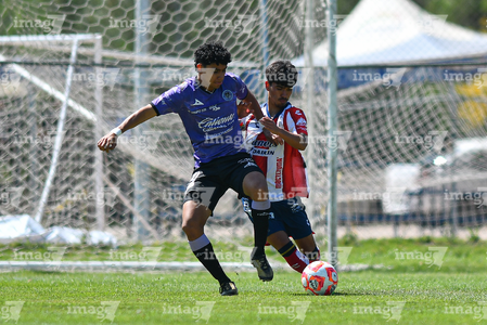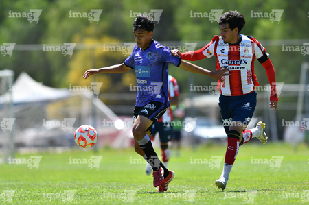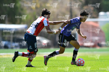 San Luis Potosí, San Luis Potosí, 03 de Marzo de 2026. 244ma y 234sl, durante el partido correspondiente a la jornada 9 del torneo Clausura 2026 de la Liga BBVA MX Sub 19, entre el Atlético San Luis y el Club Mazatlán FC, realizado en el La Prresa. Foto: Imago7/ Olimpia Puga