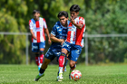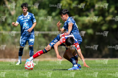 San Luis Potosí, San Luis Potosí, 14 de marzo de 2026. 165tz y 244sl, durante el partido correspondiente a la jornada 11 del torneo Clausura 2026 de la Liga BBVA MX Sub19, entre el Atlético San Luis y el Club Pachuca, realizado en el La Presa. Foto: Imago7/ Olimpia Puga