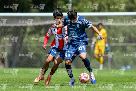 San Luis Potosí, San Luis Potosí, 14 de marzo de 2026. 250tz y 243sl, durante el partido correspondiente a la jornada 11 del torneo Clausura 2026 de la Liga BBVA MX Sub19, entre el Atlético San Luis y el Club Pachuca, realizado en el La Presa. Foto: Imago7/ Olimpia Puga