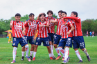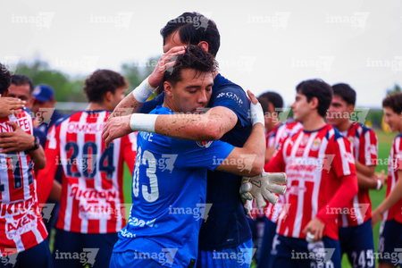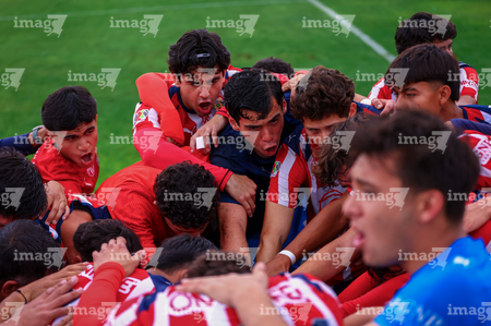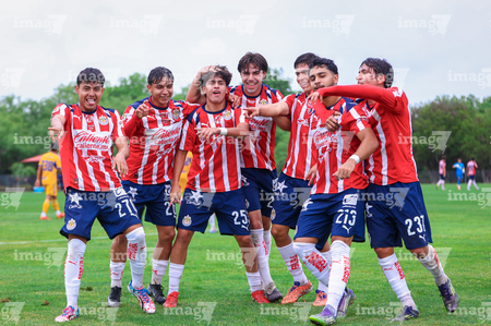 Monterrey, Nuevo León, 11 de abril de 2025. Jugadores de Chivas sub19, durante el partido correspondiente a la jornada 14 del torneo Clausura 2026 de la Liga BBVA MX categoría Sub19, entre los Tigres de la UANL y las Chivas Rayadas de Guadalajara realizado en Zuazua. Foto: Imago7/David Arzamendi