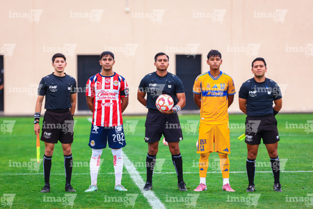 Monterrey, Nuevo León, 11 de abril de 2025. Protocolo, durante el partido correspondiente a la jornada 14 del torneo Clausura 2026 de la Liga BBVA MX categoría Sub19, entre los Tigres de la UANL y las Chivas Rayadas de Guadalajara realizado en Zuazua. Foto: Imago7/David Arzamendi