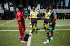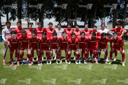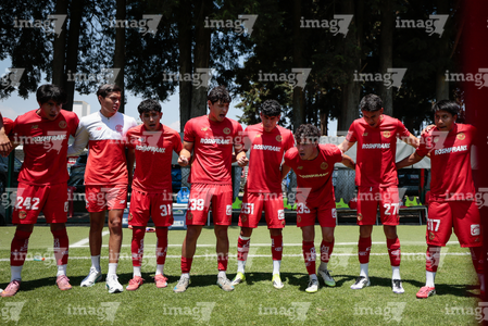 Metepec, Estado de México, 25 de abril de 2026. Protocolo, durante el partido correspondiente a la jornada 17 del torneo Clausura 2026 de la Liga BBVA MX categoría Sub19, entre los Diablos Rojos del Toluca y los Esmeraldas del León, realizado en las instalaciones de Metepec. Foto: Imago7/Daniel Arriaga