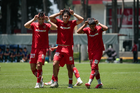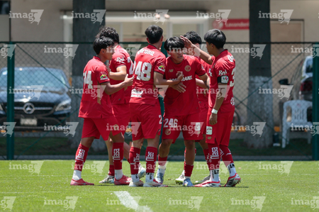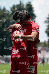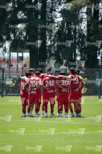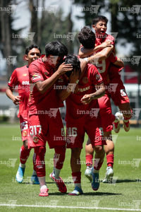Metepec, Estado de México, 25 de abril de 2026. Jugadores del Toluca, durante el partido correspondiente a la jornada 17 del torneo Clausura 2026 de la Liga BBVA MX categoría Sub19, entre los Diablos Rojos del Toluca y los Esmeraldas del León, realizado en las instalaciones de Metepec. Foto: Imago7/Daniel Arriaga