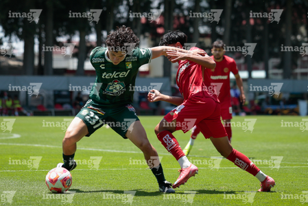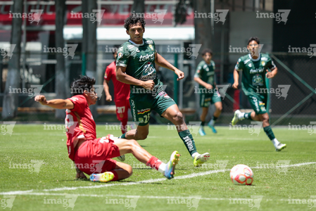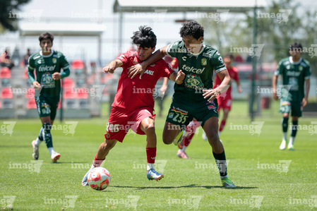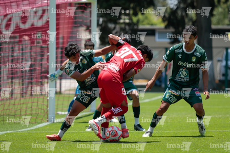 Metepec, Estado de México, 25 de abril de 2026. Jugadores de León, durante el partido correspondiente a la jornada 17 del torneo Clausura 2026 de la Liga BBVA MX categoría Sub19, entre los Diablos Rojos del Toluca y los Esmeraldas del León, realizado en las instalaciones de Metepec. Foto: Imago7/Daniel Arriaga