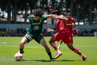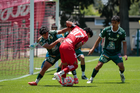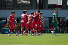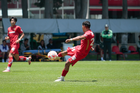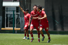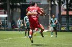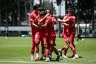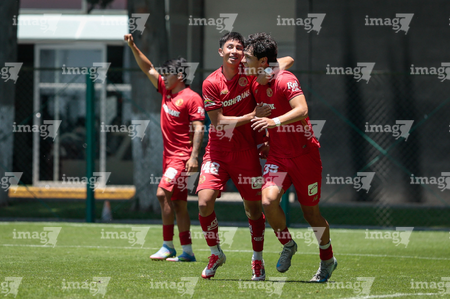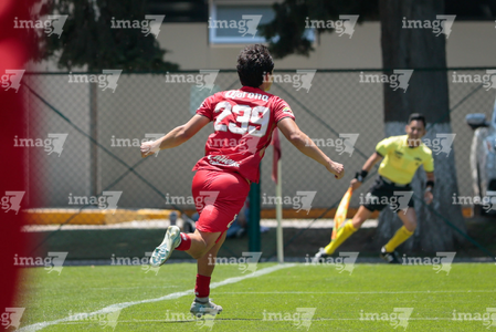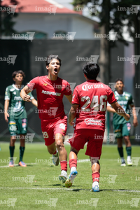 Metepec, Estado de México, 25 de abril de 2026. Carlos Carrillo anota gol, durante el partido correspondiente a la jornada 17 del torneo Clausura 2026 de la Liga BBVA MX categoría Sub19, entre los Diablos Rojos del Toluca y los Esmeraldas del León, realizado en las instalaciones de Metepec. Foto: Imago7/Daniel Arriaga