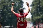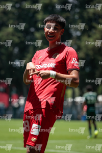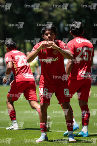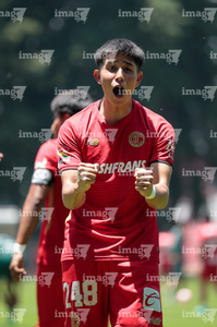 Metepec, Estado de México, 25 de abril de 2026. César Díaz en festejo de gol , durante el partido correspondiente a la jornada 17 del torneo Clausura 2026 de la Liga BBVA MX categoría Sub19, entre los Diablos Rojos del Toluca y los Esmeraldas del León, realizado en las instalaciones de Metepec. Foto: Imago7/Daniel Arriaga