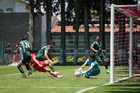 Metepec, Estado de México, 25 de abril de 2026. Abdon Turrubiates ataja tiro, durante el partido correspondiente a la jornada 17 del torneo Clausura 2026 de la Liga BBVA MX categoría Sub19, entre los Diablos Rojos del Toluca y los Esmeraldas del León, realizado en las instalaciones de Metepec. Foto: Imago7/Daniel Arriaga