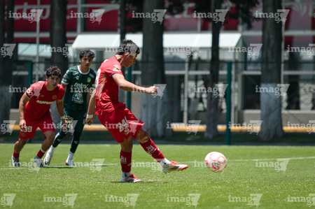Metepec, Estado de México, 25 de abril de 2026. , durante el partido correspondiente a la jornada 17 del torneo Clausura 2026 de la Liga BBVA MX categoría Sub19, entre los Diablos Rojos del Toluca y los Esmeraldas del León, realizado en las instalaciones de Metepec. Foto: Imago7/Daniel Arriaga
