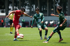 Metepec, Estado de México, 25 de abril de 2026. César Díaz anota gol , durante el partido correspondiente a la jornada 17 del torneo Clausura 2026 de la Liga BBVA MX categoría Sub19, entre los Diablos Rojos del Toluca y los Esmeraldas del León, realizado en las instalaciones de Metepec. Foto: Imago7/Daniel Arriaga