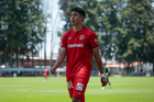 Metepec, Estado de México, 25 de abril de 2026. Jared Figueroa, durante el partido correspondiente a la jornada 17 del torneo Clausura 2026 de la Liga BBVA MX categoría Sub19, entre los Diablos Rojos del Toluca y los Esmeraldas del León, realizado en las instalaciones de Metepec. Foto: Imago7/Daniel Arriaga
