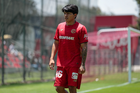 Metepec, Estado de México, 25 de abril de 2026. Hassem Zarur, durante el partido correspondiente a la jornada 17 del torneo Clausura 2026 de la Liga BBVA MX categoría Sub19, entre los Diablos Rojos del Toluca y los Esmeraldas del León, realizado en las instalaciones de Metepec. Foto: Imago7/Daniel Arriaga