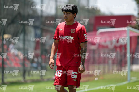 Metepec, Estado de México, 25 de abril de 2026. Jesús Montesano, durante el partido correspondiente a la jornada 17 del torneo Clausura 2026 de la Liga BBVA MX categoría Sub19, entre los Diablos Rojos del Toluca y los Esmeraldas del León, realizado en las instalaciones de Metepec. Foto: Imago7/Daniel Arriaga