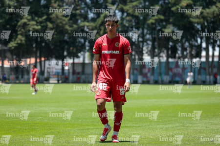 Metepec, Estado de México, 25 de abril de 2026. Abdon Turrubiates, durante el partido correspondiente a la jornada 17 del torneo Clausura 2026 de la Liga BBVA MX categoría Sub19, entre los Diablos Rojos del Toluca y los Esmeraldas del León, realizado en las instalaciones de Metepec. Foto: Imago7/Daniel Arriaga