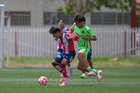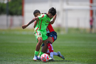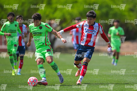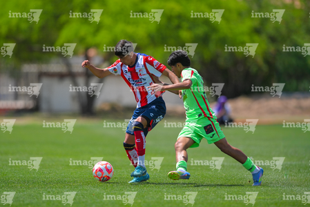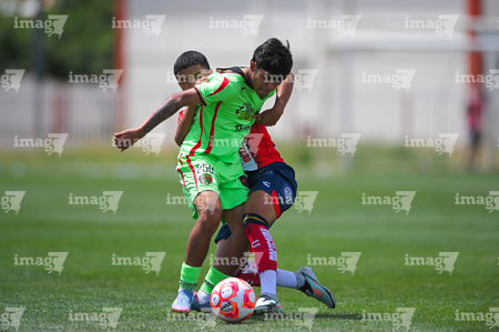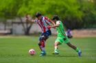 Ciudad Juárez, Chihuahua, 25 de abril de 2026. Brayan Molina y Francisco Aguirre, durante el partido correspondiente a la jornada 17 del torneo Clausura 2026 de la Liga BBVA MX categoría Sub19, entre los Bravos de FC Juárez y el Atlético San Luis, realizado en realizado en el Instituto Tecnológico de Ciudad Juárez. Foto: Imago7/ José Zamora