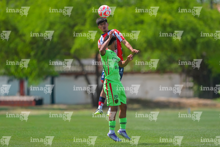 Ciudad Juárez, Chihuahua, 25 de abril de 2026. Francisco Aguirre y Mario Cota, durante el partido correspondiente a la jornada 17 del torneo Clausura 2026 de la Liga BBVA MX categoría Sub19, entre los Bravos de FC Juárez y el Atlético San Luis, realizado en realizado en el Instituto Tecnológico de Ciudad Juárez. Foto: Imago7/ José Zamora