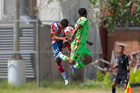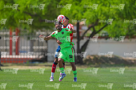 Ciudad Juárez, Chihuahua, 25 de abril de 2026. Ángel Escutia y Mario Cota, durante el partido correspondiente a la jornada 17 del torneo Clausura 2026 de la Liga BBVA MX categoría Sub19, entre los Bravos de FC Juárez y el Atlético San Luis, realizado en realizado en el Instituto Tecnológico de Ciudad Juárez. Foto: Imago7/ José Zamora