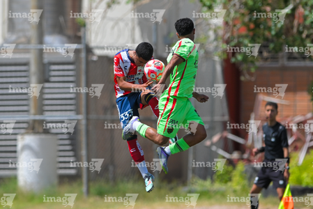 Ciudad Juárez, Chihuahua, 25 de abril de 2026. Diego Monarrez y Mario Cota, durante el partido correspondiente a la jornada 17 del torneo Clausura 2026 de la Liga BBVA MX categoría Sub19, entre los Bravos de FC Juárez y el Atlético San Luis, realizado en realizado en el Instituto Tecnológico de Ciudad Juárez. Foto: Imago7/ José Zamora