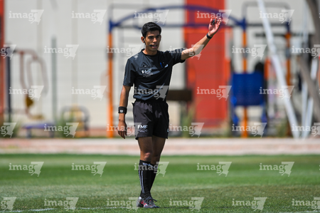 Ciudad Juárez, Chihuahua, 25 de abril de 2026. César Adrián Vega, árbitro central, durante el partido correspondiente a la jornada 17 del torneo Clausura 2026 de la Liga BBVA MX categoría Sub19, entre los Bravos de FC Juárez y el Atlético San Luis, realizado en realizado en el Instituto Tecnológico de Ciudad Juárez. Foto: Imago7/ José Zamora