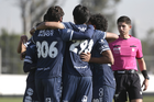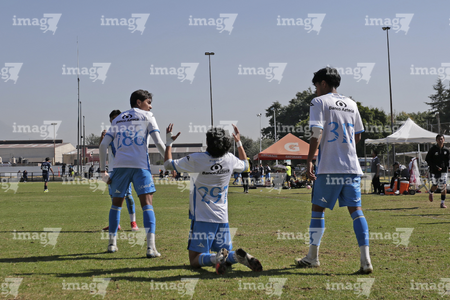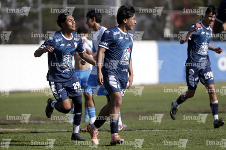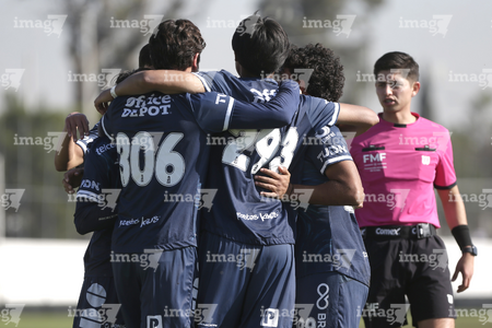 Puebla, Puebla, 11 de enero de 2026. Jugadores de Pachuca en festejo de gol, durante el partido correspondiente a la jornada 1 del torneo Clausura 2026 de la Liga BBVA MX categoría Sub 17, entre el Club Puebla y los Tuzos del Pachuca, realizado en el Club Alpha. Foto: Imago7/