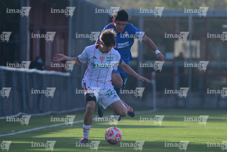 Aguascalientes, Aguascalientes, 10 de enero de 2026. Emiliano Pulido y César Villaluz, durante el partido correspondiente a la jornada 1 del torneo Clausura 2026 de la Liga BBVA MX categoría Sub17, entre los Rayos del Necaxa y la Máquina Celeste de Cruz Azul, realizado en la Casa Club del Necaxa. Foto: Imago7/