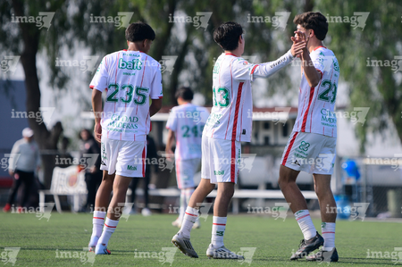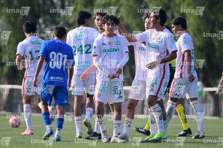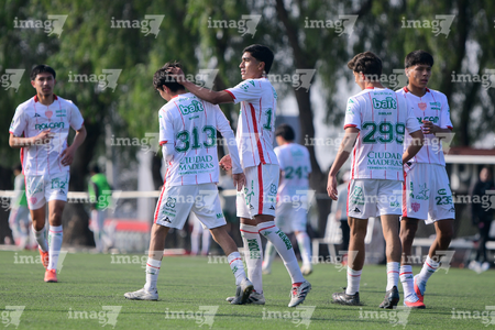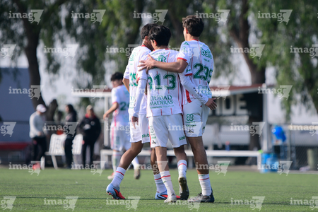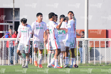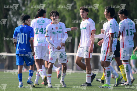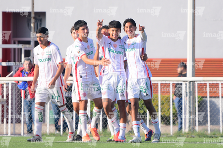 Aguascalientes, Aguascalientes, 10 de enero de 2026. Jugadores de Necaxa en festejo de gol, durante el partido correspondiente a la jornada 1 del torneo Clausura 2026 de la Liga BBVA MX categoría Sub17, entre los Rayos del Necaxa y la Máquina Celeste de Cruz Azul, realizado en la Casa Club del Necaxa. Foto: Imago7/ Pablo Ramirez