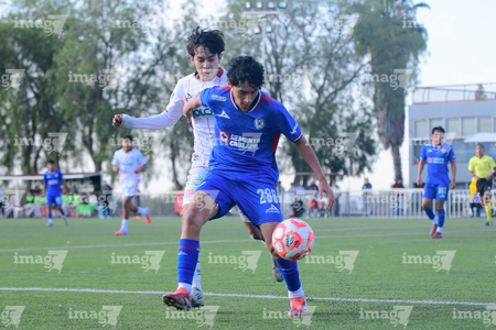 Aguascalientes, Aguascalientes, 10 de enero de 2026. Jose Villanueva (D), durante el partido correspondiente a la jornada 1 del torneo Clausura 2026 de la Liga BBVA MX categoría Sub17, entre los Rayos del Necaxa y la Máquina Celeste de Cruz Azul, realizado en la Casa Club del Necaxa. Foto: Imago7/ Pablo Ramirez