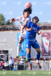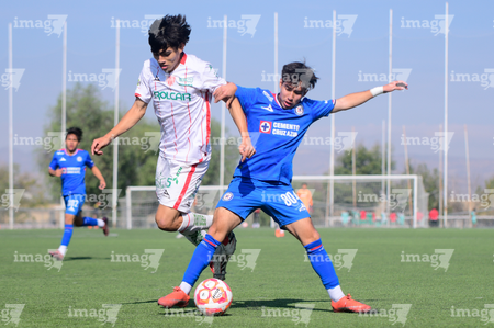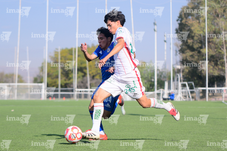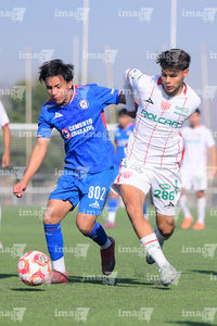 Aguascalientes, Aguascalientes, 10 de enero de 2026. Jose Villanueva y Cristian Balandran, durante el partido correspondiente a la jornada 1 del torneo Clausura 2026 de la Liga BBVA MX categoría Sub17, entre los Rayos del Necaxa y la Máquina Celeste de Cruz Azul, realizado en la Casa Club del Necaxa. Foto: Imago7/ Pablo Ramirez