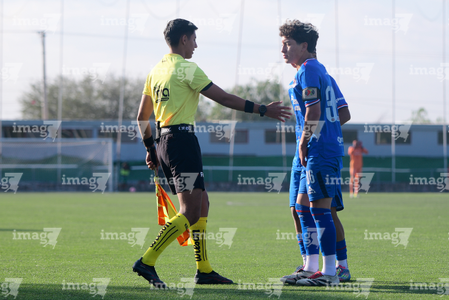 Aguascalientes, Aguascalientes, 10 de enero de 2026. César Villaluz en reclamo, durante el partido correspondiente a la jornada 1 del torneo Clausura 2026 de la Liga BBVA MX categoría Sub17, entre los Rayos del Necaxa y la Máquina Celeste de Cruz Azul, realizado en la Casa Club del Necaxa. Foto: Imago7/ Pablo Ramirez