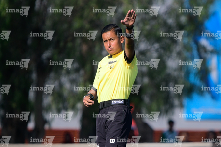 Aguascalientes, Aguascalientes, 10 de enero de 2026. Juan Antonio Rodríguez Espinoza, árbitro central, durante el partido correspondiente a la jornada 1 del torneo Clausura 2026 de la Liga BBVA MX categoría Sub17, entre los Rayos del Necaxa y la Máquina Celeste de Cruz Azul, realizado en la Casa Club del Necaxa. Foto: Imago7/ Pablo Ramirez
