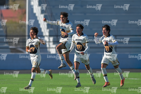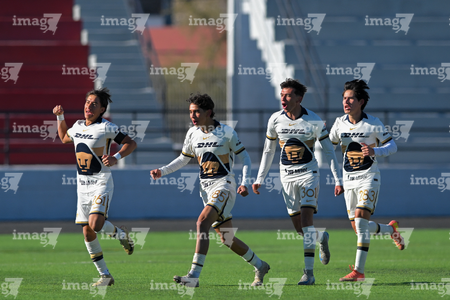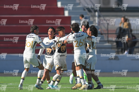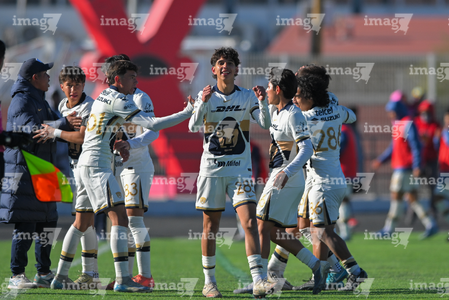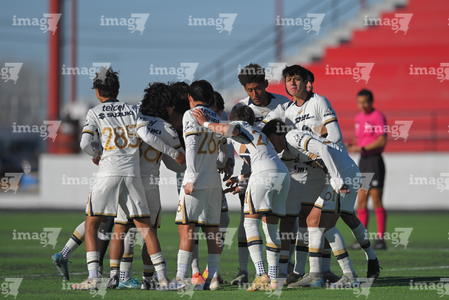 Ciudad Juárez, Chihuahua, 10 de enero de 2026. Jugadores de Pumas, durante el partido correspondiente a la jornada 1 del torneo Clausura 2026 de la Liga BBVA MX categoría Sub17, entre los Bravos de FC Juárez y los Pumas de la UNAM, realizado en realizado en el Estadio 8 de Diciembre. Foto: Imago7/ José Zamora