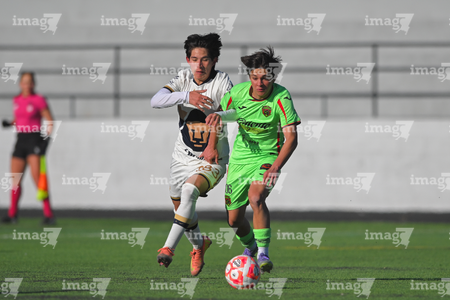 Ciudad Juárez, Chihuahua, 10 de enero de 2026. Santiago Vigueras y Felix Díaz, durante el partido correspondiente a la jornada 1 del torneo Clausura 2026 de la Liga BBVA MX categoría Sub17, entre los Bravos de FC Juárez y los Pumas de la UNAM, realizado en realizado en el Estadio 8 de Diciembre. Foto: Imago7/ José Zamora