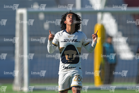 Ciudad Juárez, Chihuahua, 10 de enero de 2026. Santiago Vigueras en festejo de gol, durante el partido correspondiente a la jornada 1 del torneo Clausura 2026 de la Liga BBVA MX categoría Sub17, entre los Bravos de FC Juárez y los Pumas de la UNAM, realizado en realizado en el Estadio 8 de Diciembre. Foto: Imago7/ José Zamora