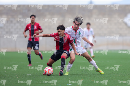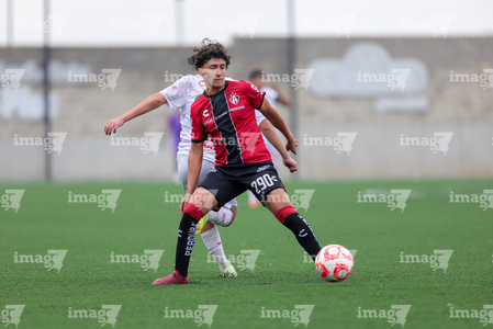 Guadalajara, Jalisco, 17 de enero de 2026. Horacio Villarruel (I), durante el partido correspondiente a la jornada 2 del torneo Clausura 2026 de la Liga BBVA MX categoría Sub17, entre los Rojinegros del Atlas y las Chivas Rayadas del Guadalajara, realizado en la Academia AGA. Foto: Imago7/