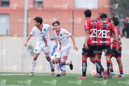 Guadalajara, Jalisco, 17 de enero de 2026. Jugadores de Chivas en festejo de gol, durante el partido correspondiente a la jornada 2 del torneo Clausura 2026 de la Liga BBVA MX categoría Sub17, entre los Rojinegros del Atlas y las Chivas Rayadas del Guadalajara, realizado en la Academia AGA. Foto: Imago7/