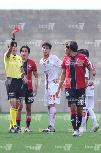 Guadalajara, Jalisco, 16 de enero de 2026. Ulises Ramsés Quintero Rodríguez, muestra tarjeta roja de expulsión, durante el partido correspondiente a la jornada 3 del torneo Clausura 2026 de la Liga BBVA MX Femenil, entre las Rojinegras del Atlas y las Xolas de Tijuana, realizado en el estadio Jalisco. Foto: Imago7/Cristian Hernandez