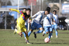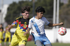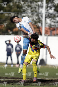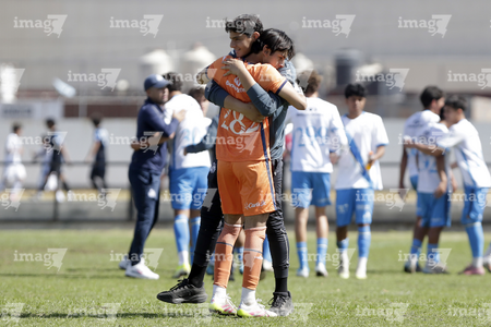 Puebla, Puebla a 7 de febrero de 2026. Bruno Montfort y Eduardo Sanchez, durante el partido correspondiente a la jornada 5 del torneo Clausura 2026 de la Liga BBVA MX categoría Sub 17, entre el Club Puebla y las Águilas del América, realizado en el Club Alpha. Foto: Imago7/Mireya Novo